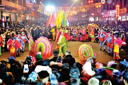 沒有了往年的大型彩門,沒有了往年的大型彩車,也沒有了往年的大型文藝隊伍,但彩燈仍然亮起來了,旺火仍然燃起來了,鼓樂也響起來了,人群也聚起來了,禮花也打起來了……2016年繁峙縣的元宵節(jié)是在一片節(jié)儉氛圍中進行的,雖然聲勢規(guī)模小了,但元宵節(jié)的氛圍依然濃厚,人們歡樂的笑聲仍然在街道上蕩漾,繁峙人民過了一個節(jié)儉簡約、文明健康的元宵佳節(jié)。(李曉軍 攝)