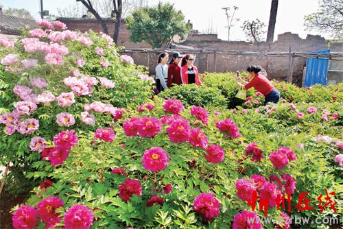 近年來,原平市大力發(fā)展庭院經(jīng)濟(jì)、農(nóng)家樂觀光旅游業(yè),既美化了環(huán)境,又鼓了農(nóng)民錢袋子。圖為柳巷村農(nóng)家院里種植的牡丹競相開放,引得游人們爭相賞花拍照。(趙月仁 攝)