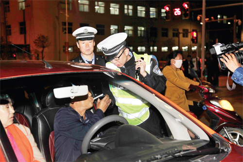 五月五日是全國(guó)集中整治酒駕統(tǒng)一行動(dòng)日,為嚴(yán)厲打擊酒駕醉駕違法犯罪行為,全力防范因酒駕醉駕而導(dǎo)致的道路交通事故,靜樂(lè)縣公安交警大隊(duì)合理布控、設(shè)置流動(dòng)崗,采取分時(shí)段蹲點(diǎn),嚴(yán)查酒駕、醉駕等重點(diǎn)違法行為,圖為夜查現(xiàn)場(chǎng)。(記者 王國(guó)棟 攝)
