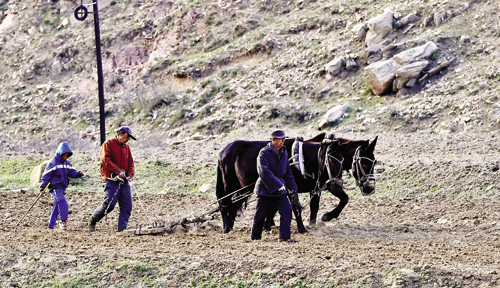 寧武縣東馬坊小學五年級學生孫存政,經(jīng)常利用節(jié)假日回到地處高寒山區(qū)的達達店村,做些力所能及的家務(wù)和農(nóng)活,既幫了家里的忙,又增加了社會實踐知識。圖為“五一”期間,小孫跟爺爺學耕田。(薛慧 攝)