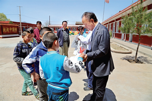 2006 年由省委組織部扶貧工作隊(duì)和省僑辦牽線搭橋,由海外華人創(chuàng)建的欣欣教育基金會(huì)向靜樂縣康家會(huì)小學(xué)捐贈(zèng)一萬美元資助建設(shè)新校舍,新校舍于2006 年8 月份投入使用。5 月17 日,該基金會(huì)副會(huì)長丁永慶一行深入靜樂縣,走訪基金會(huì)當(dāng)年捐建的康家會(huì)小學(xué)。圖為基金會(huì)工作人員在和學(xué)生交談,了解學(xué)?,F(xiàn)在存在的問題和困難,希望與該校保持長期固定的聯(lián)系,以便進(jìn)一步的交流和幫助。(閆曉梅 攝)