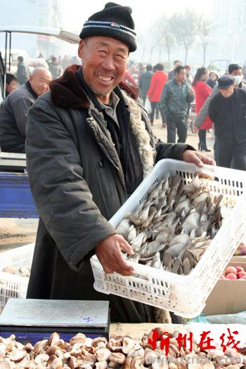 11月17日,原平市五彥村農民白銀鎖正在市場上銷售鮮蘑菇,豐收的鮮蘑上市,使他喜上眉梢,甜在心頭。該市大力發(fā)展一村一品高效設施種植業(yè),讓農民得到實實在在的實惠。他們高興地說,大棚種植業(yè)如今成為農民勤勞致富的聚寶盆。(趙春曉 攝)