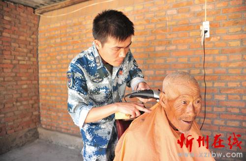 圖為部隊(duì)?wèi)?zhàn)士為老鄉(xiāng)義務(wù)理發(fā)