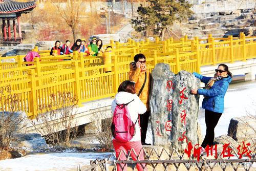 12月14日,原平市天牙山景區(qū)迎來雪后第一批游人。冬日的天牙山雖然沒有春夏綠的點綴,沒有秋的七彩斑斕,卻在一場雪的裝點下分外妖嬈,游人步入,陶醉在裸露的奇山、秀湖,紛紛拿出手機拍照留影,記錄冬日天牙山的另一番美景。(吉建平 攝)