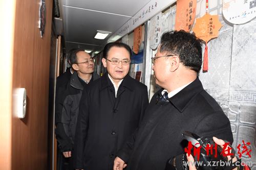 圖為太原鐵路局、忻州市領(lǐng)導(dǎo)登車參觀。(本報(bào)記者 馮曉磊 攝)
