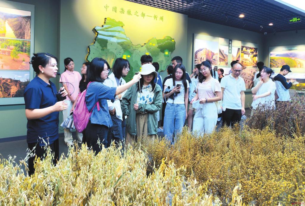 7月22日,中山大學(xué)博雅學(xué)院二十五名師生利用暑期時間來我市開展學(xué)習(xí)實踐活動。圖為師生在忻州雜糧文化展示中心參觀學(xué)習(xí)。(記者 張存良攝)