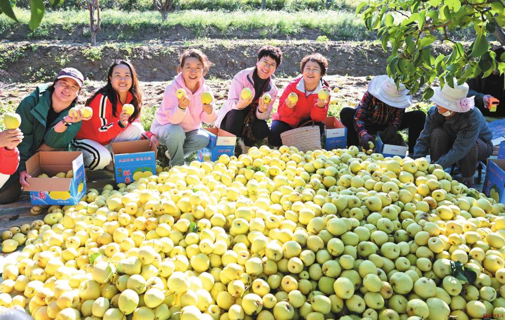 定襄縣北社東村、北社西村一帶盛產(chǎn)酥梨。由于交通便利,金秋十月吸引了眾多觀光客前來采摘。田間地頭,梨樹之下,一派豐收景象。(