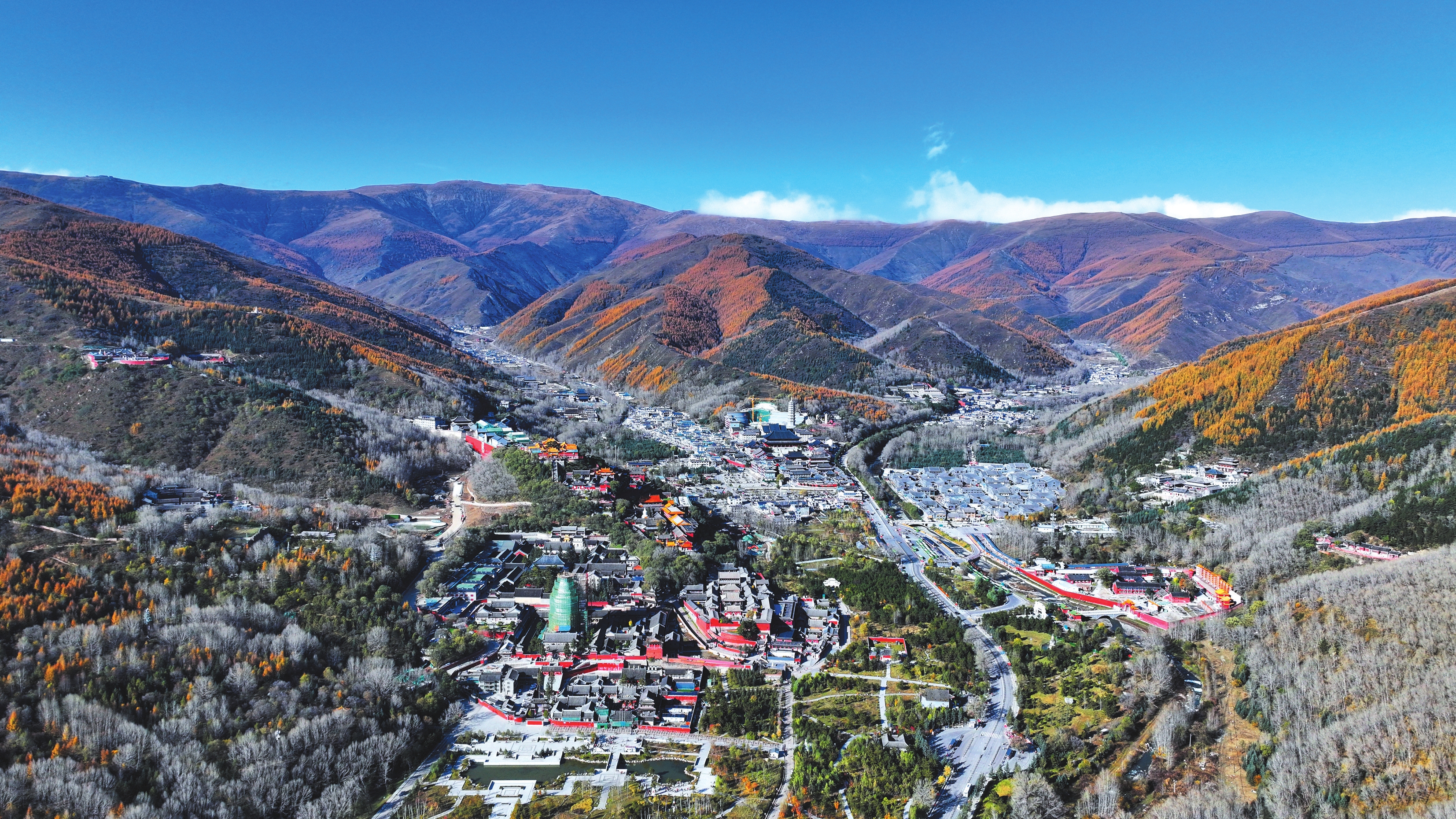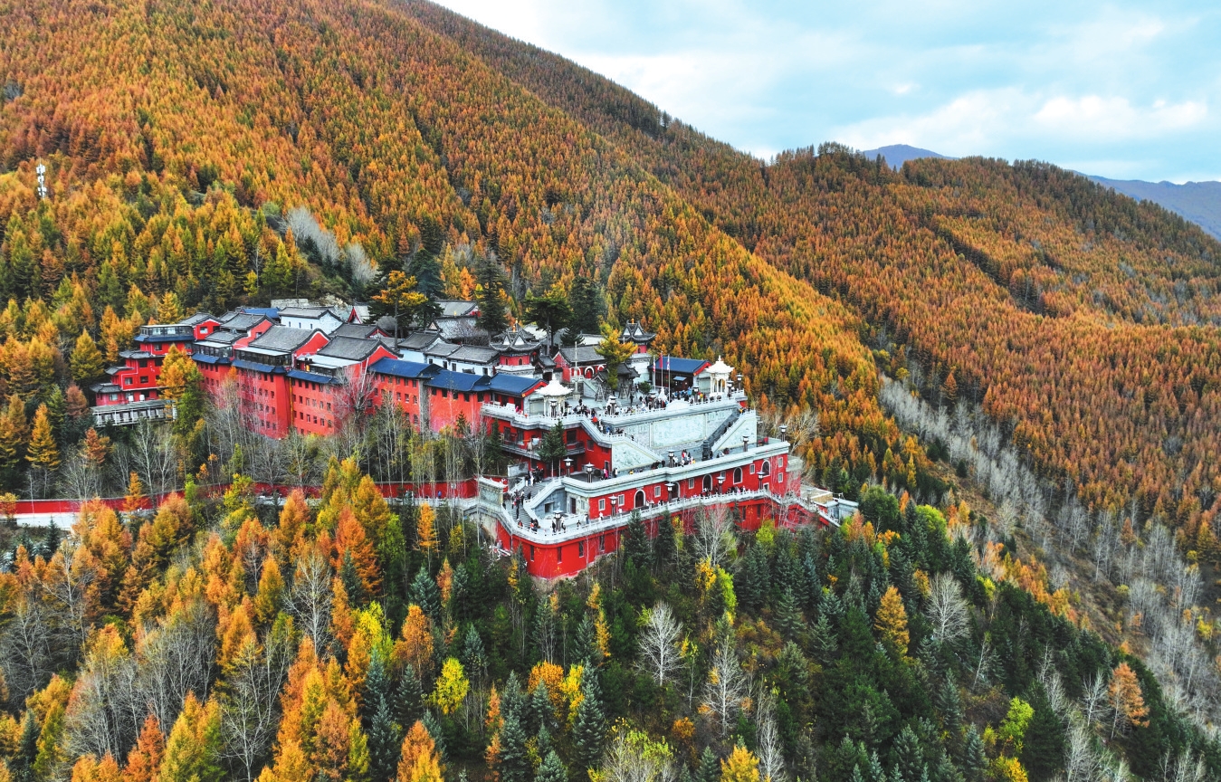 秋季已近尾聲,五臺山的秋色卻進入最絢爛的篇章。漫山松柏與闊葉林褪去翠綠,換上金色、赤紅與橙黃的華服,與千年古剎的紅墻黛瓦相映成景,吸引海內外游客共赴這場秋日禪意之約。
