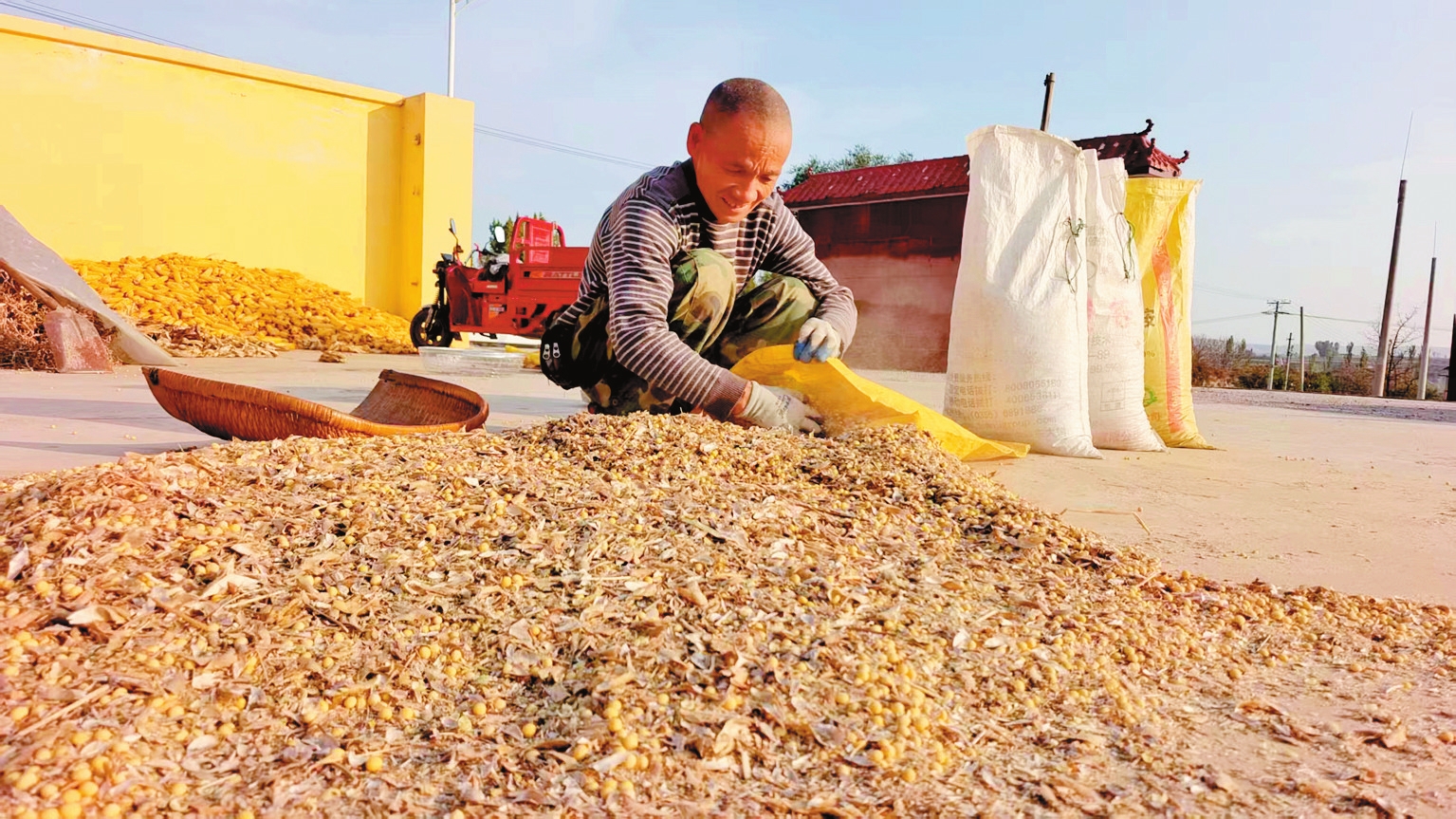 近日,河曲縣唐家會(huì)村的村民們正晾曬收獲的黃豆,確保顆粒歸倉。(