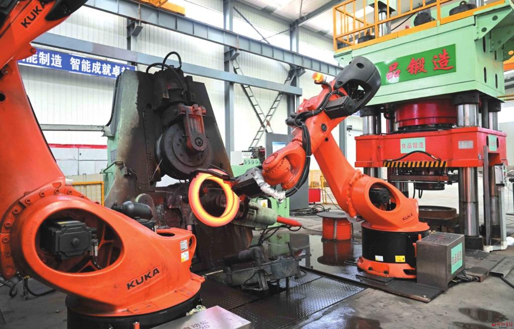 山西良品鍛造有限公司法蘭流水線機(jī)器人智能化生產(chǎn)作業(yè)