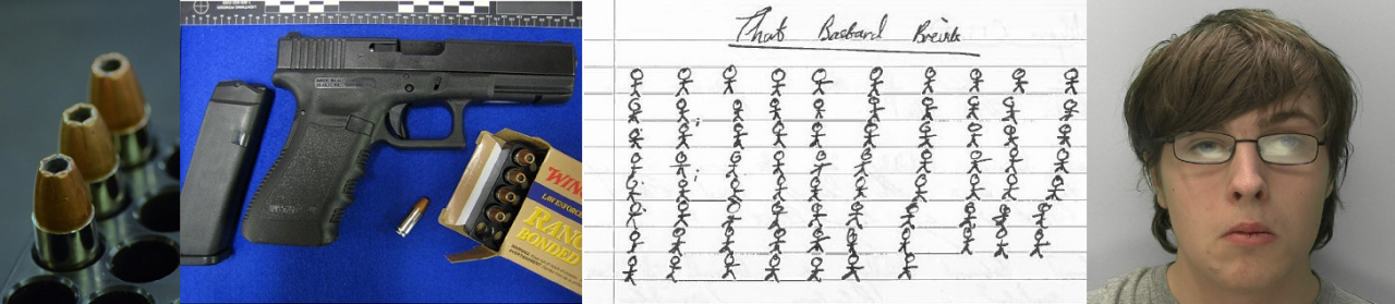 2019年7月,19歲的白人青年戴維斯因預(yù)謀槍擊案被判處19年監(jiān)禁。此前,美國(guó)國(guó)土安全局在某地機(jī)場(chǎng)截獲他的網(wǎng)購(gòu)包裹,內(nèi)藏手槍和彈藥。英國(guó)警方在跟進(jìn)調(diào)查時(shí)發(fā)現(xiàn),他的手機(jī)和電腦裝置上有許多有關(guān)大規(guī)模槍擊案的搜索記錄,其中包括2011年發(fā)生在挪威的一起由極右翼分子實(shí)施的大規(guī)??植罉寭舭浮?/p>