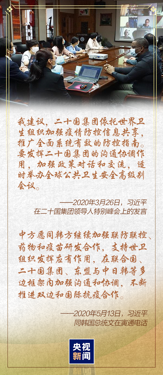 與各方分享交流抗疫經(jīng)驗(yàn)、倡導(dǎo)團(tuán)結(jié)合作提振世界經(jīng)濟(jì)、推動(dòng)構(gòu)建人類衛(wèi)生健康共同體……通過一場(chǎng)場(chǎng)“云外交”,習(xí)近平主席引領(lǐng)中國(guó)成為全球抗疫的重要力量、維護(hù)世界穩(wěn)定發(fā)展的中流砥柱。
