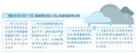 據氣象部門報告,預計8月4日-7日,我省將出現(xiàn)入汛以來最強降雨過程。為做好此次強降雨防范應對,8月3日下午,省防汛抗旱指揮部組織了緊急會商,進一步強弱項、補短板,全力做好各項工作,確保安全度汛。