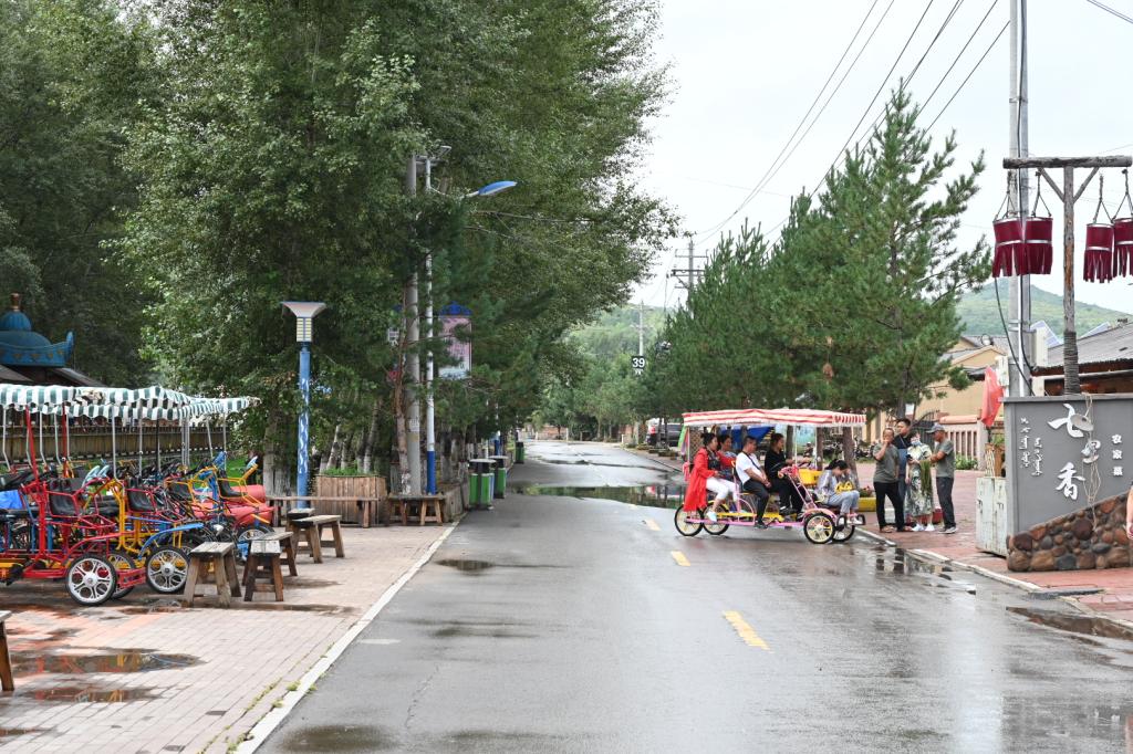 民俗風情一條街 澎湃新聞記者 孫湛 圖 辛天喜今年56歲,在白雙龍的鼓勵下,旅游旺季在民俗風情街專門做租賃觀光車的生意。2017年的時候,他花了2萬元從天津購買了6輛觀光自行車,一個夏天,僅出租觀光自行車這一項的收入就達到了7萬元,之后辛天喜又陸續(xù)購買了10輛觀光自行車,并開始經營燒烤和小吃等項目,2018年就賺近10萬元左右。 如今,辛天喜又購置了嶄新的電瓶車,“我是一年四季忙到頭啊,租賃電瓶車、燒烤、經營奶茶屋,年收入能達到10萬吧,反正以前想都不敢想,只知道想賺錢要外出打工,現(xiàn)在家門口就能發(fā)家致富了?!?/span> 白書記和他的開心農場 “看我們的南瓜大不大,這個品種特別好,炒出菜來很甜;看這黃瓜長得多好;那邊的葫蘆藤適合拍照……”作為開心農場的“發(fā)起人”和“掌門人”,進入開心農場后,白雙龍仿佛回到了自己的家,興奮地和我們分享著菜地里的品種繁多的瓜果長勢情況。