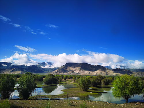 從拉薩到山南,是一段很長(zhǎng)的旅程。駕車(chē)行駛在這里的公路上,野花野草野蠻生長(zhǎng),“青山隨云走,大地沿河流”。