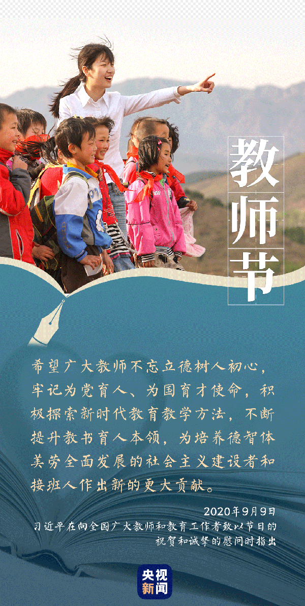 2015年9月9日,習近平給“國培計劃(2014)”北京師范大學貴州研修班全體參訓教師回信,指出“ 發(fā)展教育事業(yè),廣大教師責任重大、使命光榮”。