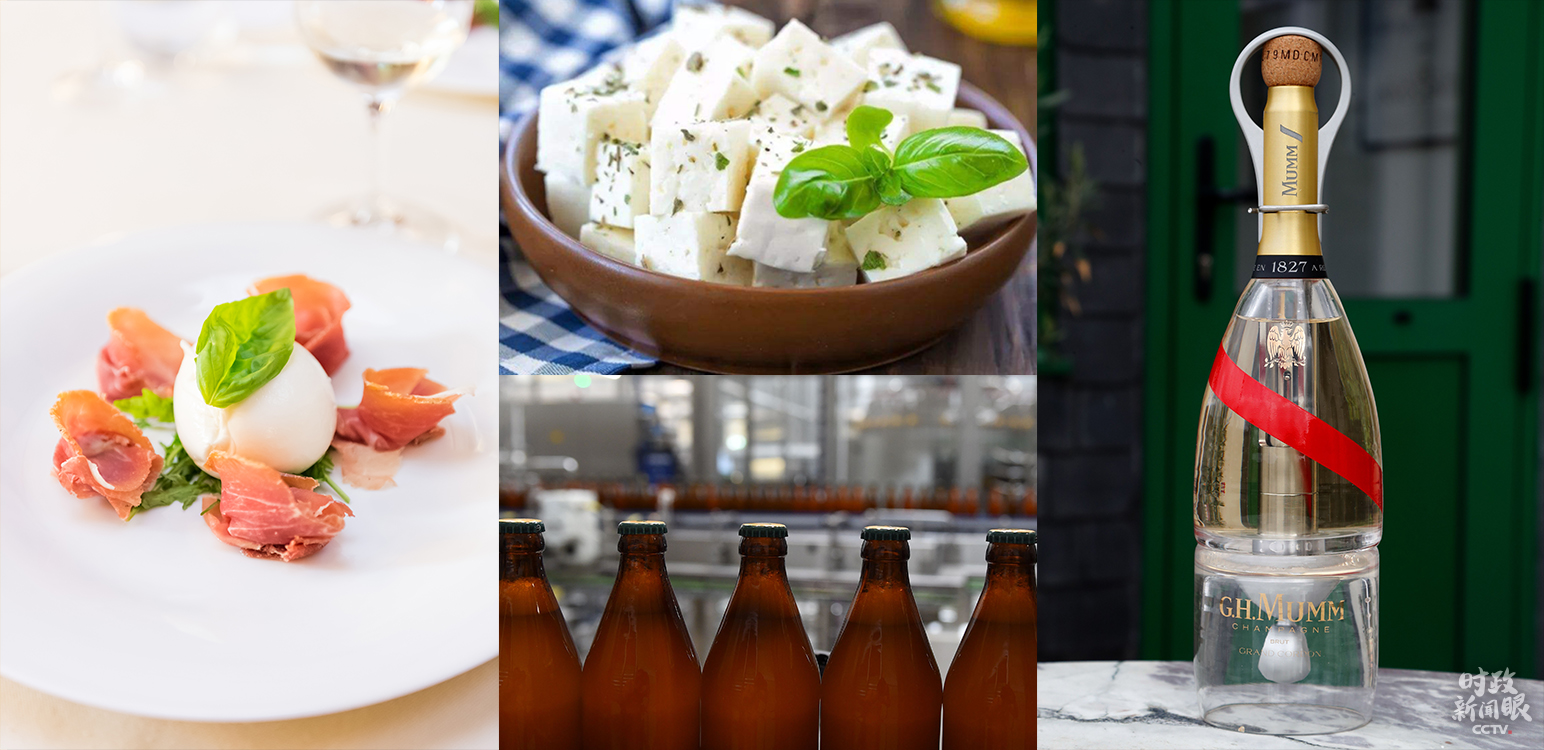 △歐盟地理標(biāo)志產(chǎn)品包括帕爾瑪火腿、菲達(dá)奶酪、巴伐利亞啤酒、法國香檳等。