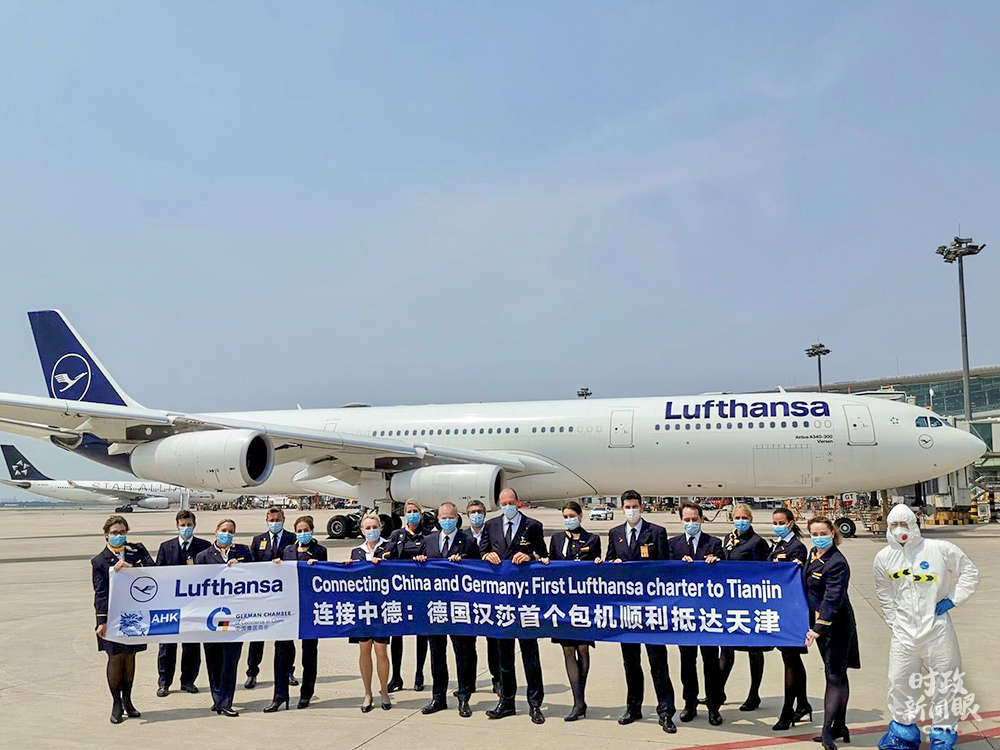 △5月30日,德國漢莎航空LH342航班承運(yùn)約200名德國企業(yè)家、技術(shù)專家等旅客,自法蘭克福飛抵天津。這是中德之間的首班復(fù)工包機(jī),兩國間的“快捷通道”得以實(shí)現(xiàn)。