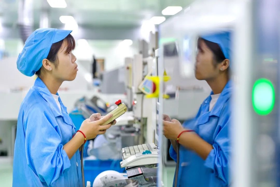 △2020年9月14日,位于浙江省湖州市長興經(jīng)濟技術開發(fā)區(qū)的一家科技公司車間,工人正在檢查貼片坐標準確性。
