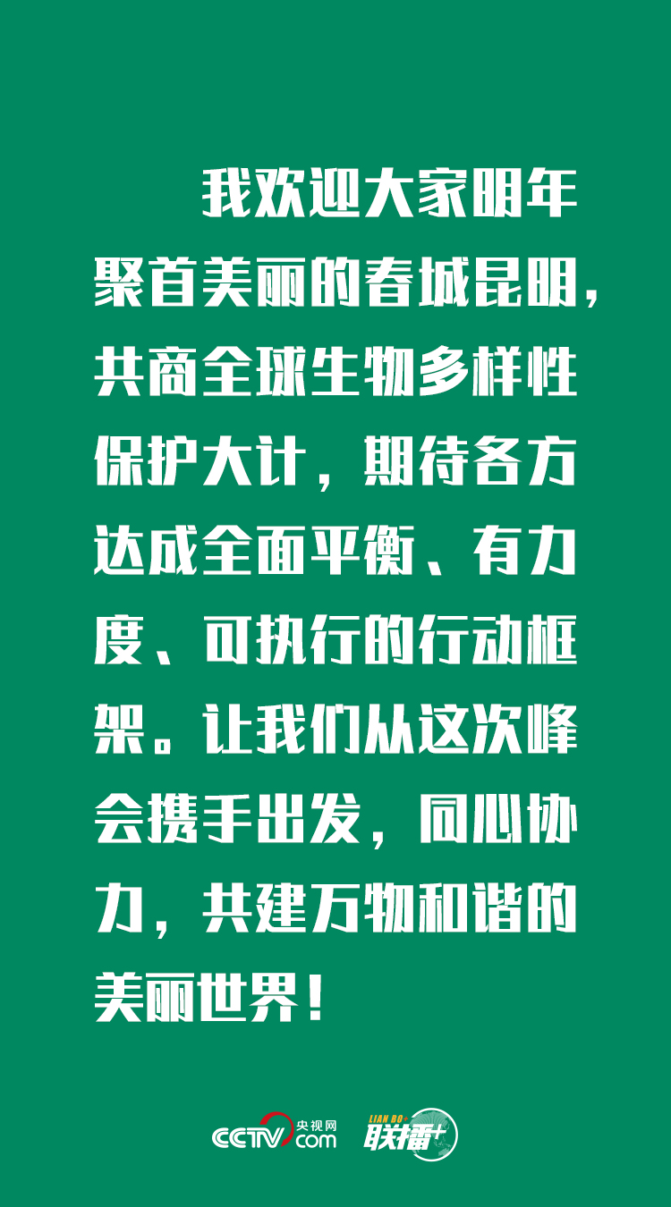 “當前,全球物種滅絕速度不斷加快,生物多樣性喪失和生態(tài)系統(tǒng)退化對人類生存和發(fā)展構成重大風險。新冠肺炎疫情告訴我們,人與自然是命運共同體。我們要同心協(xié)力,抓緊行動,在發(fā)展中保護,在保護中發(fā)展,共建萬物和諧的美麗家園?!绷暯街飨h: