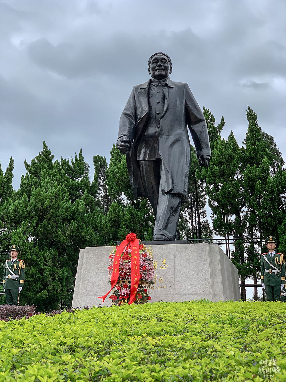 △總書(shū)記當(dāng)天向鄧小平銅像敬獻(xiàn)花籃。(總臺(tái)央視記者段德文拍攝)