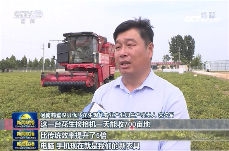 在河南鶴壁,8000畝花生田里,大型無(wú)人駕駛農(nóng)機(jī)按照規(guī)劃路徑精準(zhǔn)地開(kāi)進(jìn)花生田。從育種到收獲,機(jī)械化、智能化貫穿始終。