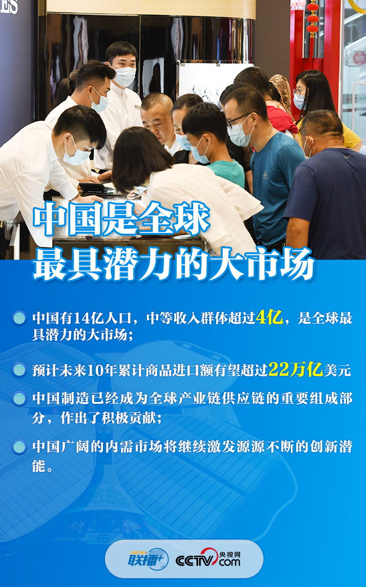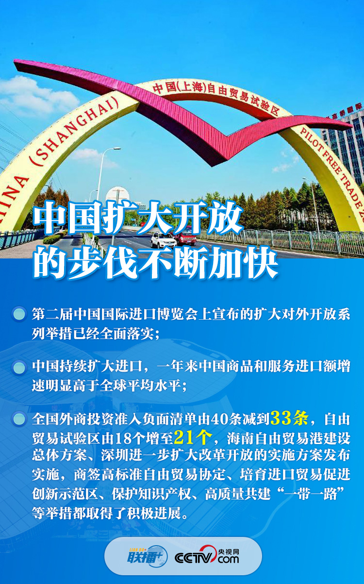 “各國企業(yè)參展踴躍,展覽面積又?jǐn)U大了近3萬平方米”,“全國外商投資準(zhǔn)入負(fù)面清單由40條減到33條,自由貿(mào)易試驗(yàn)區(qū)由18個(gè)增至21個(gè)”,“中國有14億人口,中等收入群體超過4億,是全球最具潛力的大市場(chǎng)”......一組組數(shù)字振奮人心,體現(xiàn)了中國邀請(qǐng)各方“聚進(jìn)博、享機(jī)遇”、推動(dòng)世界經(jīng)濟(jì)復(fù)蘇的真誠愿望,展現(xiàn)了中國在大疫面前與各國“共天地、同風(fēng)雨”的大國擔(dān)當(dāng)。