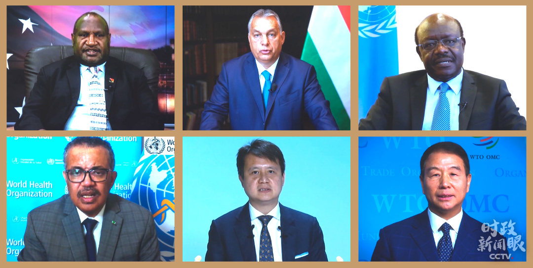 △巴布亞新幾內(nèi)亞總理馬拉佩、匈牙利總理歐爾班、聯(lián)合國(guó)貿(mào)易和發(fā)展會(huì)議秘書(shū)長(zhǎng)基圖伊、世衛(wèi)組織總干事譚德塞、世界知識(shí)產(chǎn)權(quán)總干事鄧?guó)欥?、世貿(mào)組織副總干事易小準(zhǔn)發(fā)表視頻致辭。