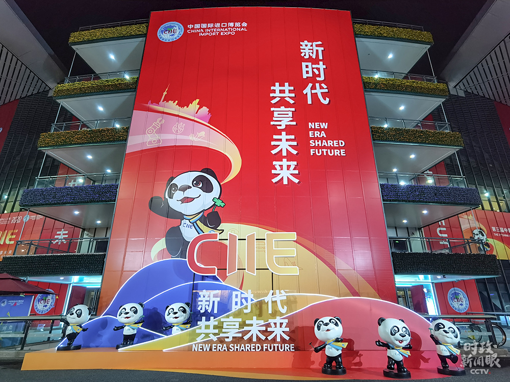 △進(jìn)博會(huì)吉祥物“進(jìn)寶”是亮眼元素。(總臺(tái)央視記者王萌萌、國(guó)廣記者李晉拍攝)