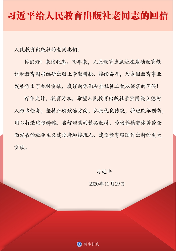 習(xí)近平給人民教育出版社老同志的回信