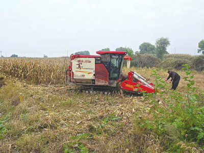 馬路旁邊,收購商的卡車早已等候在側(cè),剛剛收獲的玉米實現(xiàn)了從田間到收購的“無縫對接”。收割機的儲糧倉緩緩伸出傳送管,嘩啦啦的傾瀉聲成了這個秋天最動聽的豐收曲。