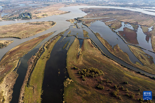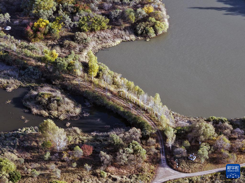 這是10月7日拍攝的哈爾濱金河灣濕地公園景色(無人機照片)。(新華社記者 王松 攝)