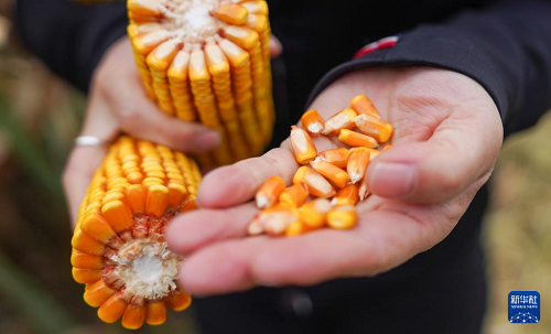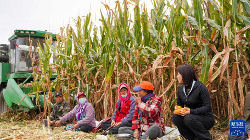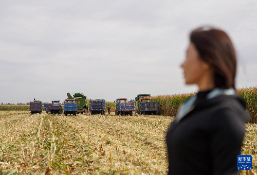 10月9日,韓鳳香來(lái)到玉米地查看秋收情況。(新華社記者 顏麟蘊(yùn) 攝)