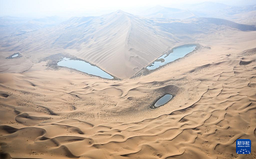 秋日,位于內(nèi)蒙古阿拉善盟阿拉善右旗的世界遺產(chǎn)巴丹吉林沙漠—沙山湖泊群褪去炙熱,綿延的沙丘披上柔和金光,與點(diǎn)綴其間的湖泊相映成趣,勾勒出一幅靜謐而壯麗的自然畫卷。