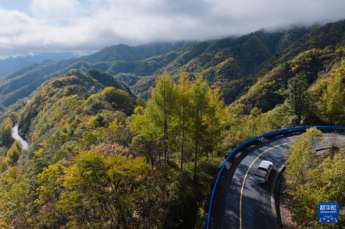 10月30日拍攝的鎮(zhèn)坪縣境內化龍山秋日景色(無人機照片)。(新華社記者 邵瑞 攝)