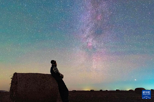 10月31日,攝影愛(ài)好者在黑龍江省富錦市上街基鎮(zhèn)觀(guān)賞秋季銀河。(新華社發(fā) 曲玉寶 攝)