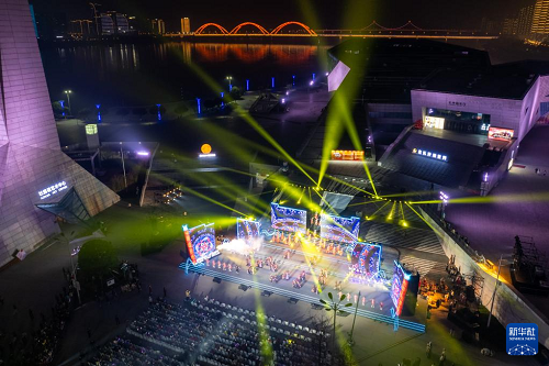 12月9日拍攝的2025年湖南“歡樂瀟湘”優(yōu)秀群眾文藝作品展演活動現(xiàn)場(無人機(jī)照片)。(新華社記者 陳思汗 攝)