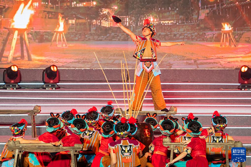 12月9日晚,演員在展演活動上演唱《撮珠朵·嫁》。(新華社記者 陳思汗 攝)