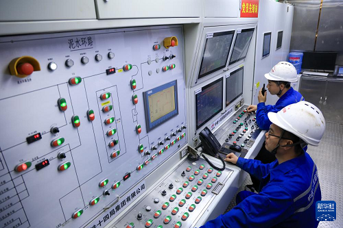 1月6日,中鐵十四局施工人員在“深江1號”盾構(gòu)機(jī)操作室控制設(shè)備運(yùn)行。(新華社記者 毛思倩 攝)