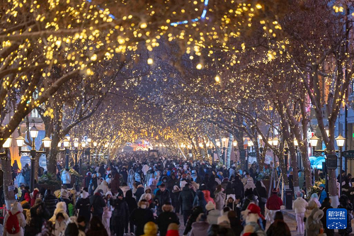 時下,“冰城”哈爾濱正值冰雪旅游季。夜幕降臨,百年老街中央大街被璀璨燈火點亮,游客置身其中,仿佛步入流動的冰雪藝術(shù)長廊,令人流連忘返。