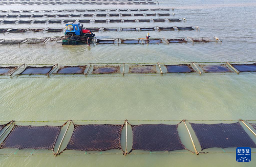 1月15日,江蘇省南通市如東縣長沙鎮(zhèn)濱海村位于黃海的紫菜養(yǎng)殖區(qū)一片忙碌,養(yǎng)殖戶忙著收獲頭水紫菜。據(jù)了解,如東縣紫菜海上養(yǎng)殖面積近8萬畝,紫菜產(chǎn)品出口40多個(gè)國家,全行業(yè)年產(chǎn)值近40億元。