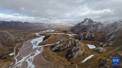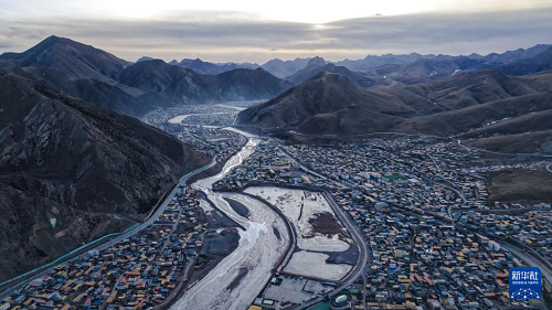 這是1月30日拍攝的青海省玉樹藏族自治州雜多縣冬景風光(無人機照片)。(新華社記者 齊芷玥 攝)