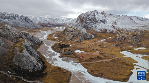 這是1月30日在青海省玉樹藏族自治州雜多縣境內(nèi)拍攝的冬景風光(無人機照片)。(新華社記者 齊芷玥 攝)