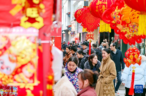 2月5日,人們在甘肅省蘭州市城關(guān)區(qū)張掖路年貨市場選購年貨。(新華社發(fā) 侯崇慧 攝)