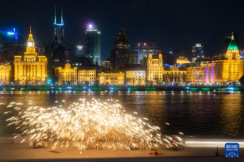 近日,首屆“浦東中國年味節(jié)”在上海市浦東新區(qū)黃浦江畔舉行,非遺“打鐵花”成為夜色中一道亮麗的風(fēng)景線。