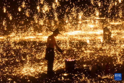 非遺“打鐵花”表演點(diǎn)亮上海