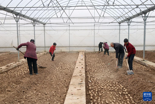 2月25日,河南省洛陽(yáng)市汝陽(yáng)縣劉店鎮(zhèn)沙坪村村民在溫棚內(nèi)培育優(yōu)質(zhì)紅薯苗。(新華社發(fā) 康紅軍 攝)