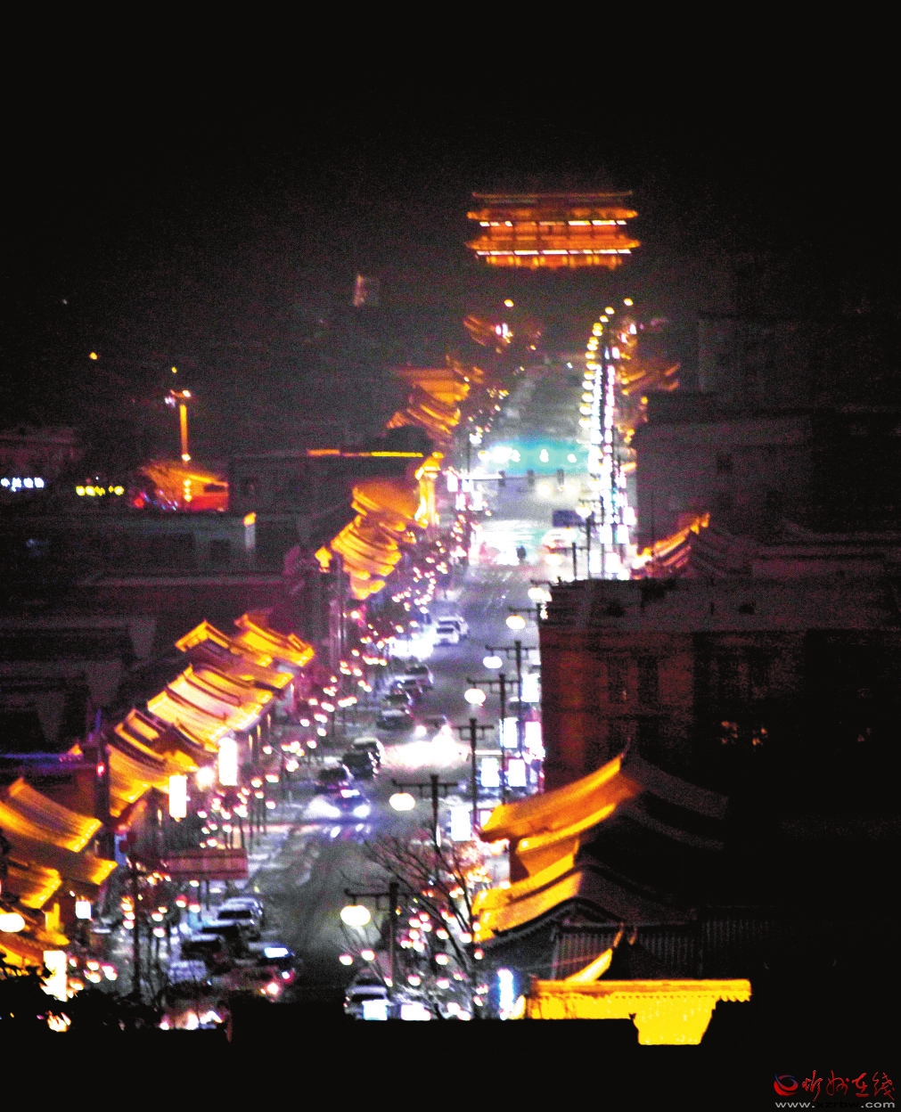 3月19日,我市普降瑞雪,雪后的忻州古城銀裝素裹,古建民居和燈火璀璨的夜景相互輝映,宛如畫卷。(趙晨善 攝)