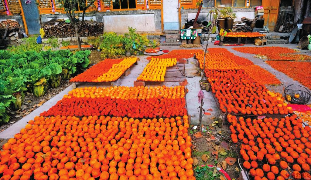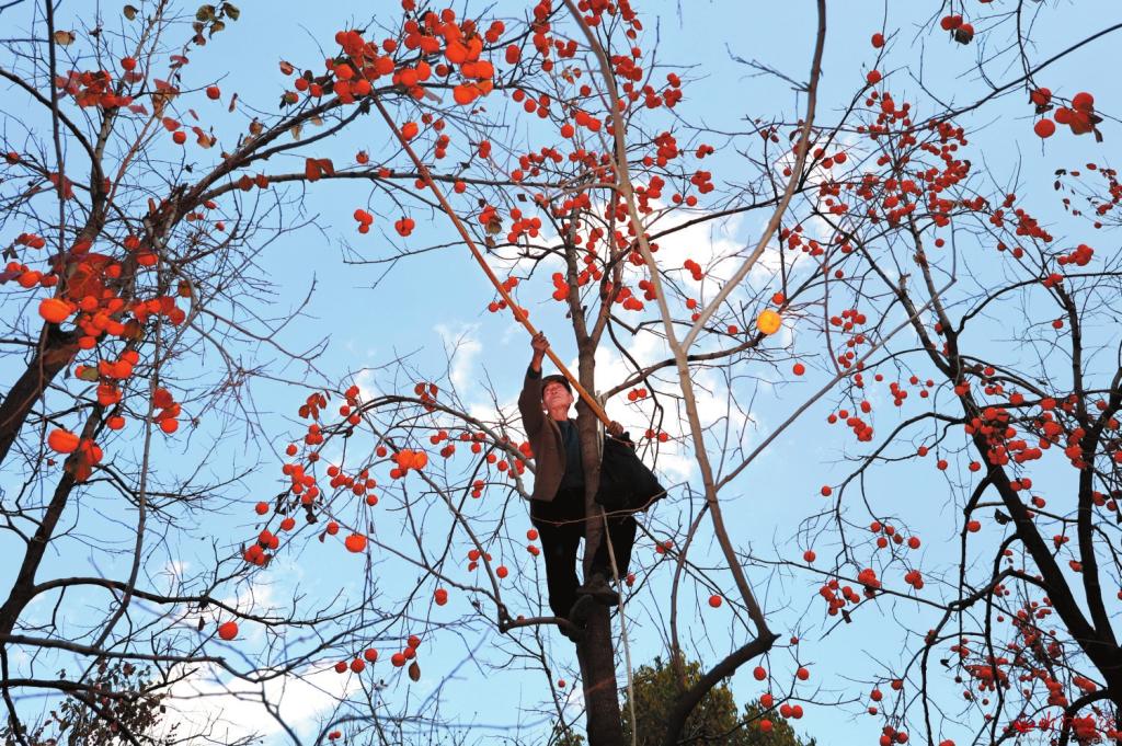 這個(gè)季節(jié),東峪便成為網(wǎng)紅打卡地,吸引了遠(yuǎn)近無(wú)數(shù)的游人。這樣的美景,最宜天晴時(shí)靜賞,紅柿,藍(lán)天,冷暖相宜,濃淡有致,組成了一幅絕美的秋韻圖。這個(gè)季節(jié),也是農(nóng)戶的豐收季,一家人都出動(dòng),把柿子摘下,在院子里晾曬,滿院子甘甜美味,是煙火人間里最真切的幸福,心里也會(huì)生出喜悅和希望。(本報(bào)記者 聶艷英)