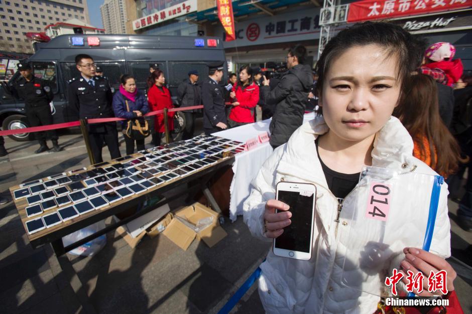3月2日,山西太原警方發(fā)還民眾被盜手機。近日,太原市公安局偵破一個手機扒竊犯罪團伙,破獲案件200余起,追繳手機180余部。張云 攝